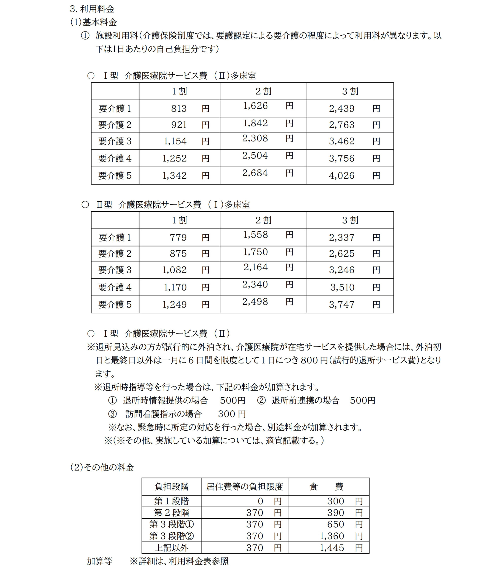 入居者の方の要介護度と施設のサービス内容により介護報酬上の単位が定められています。また、居住費・食費については施設との契約額となります。(低所得の方は負担軽減の対象となります。)